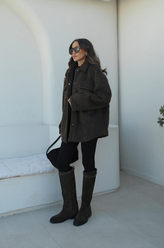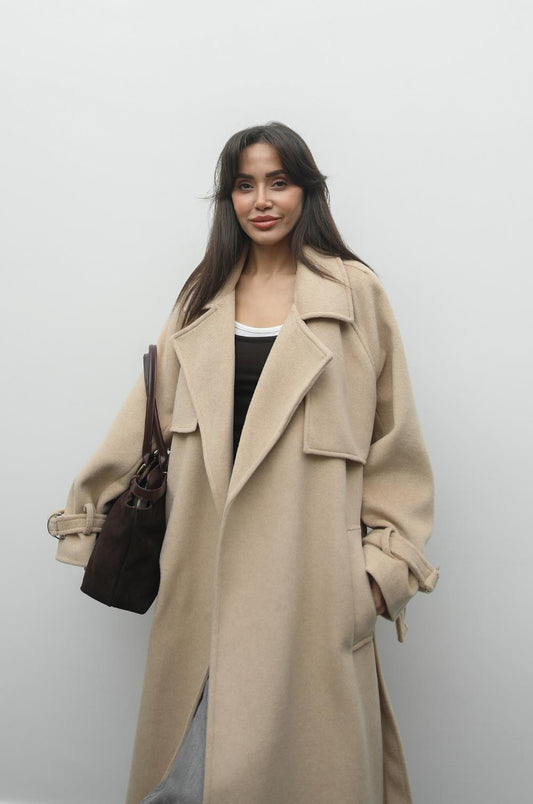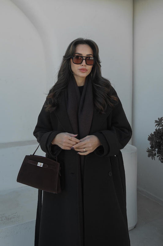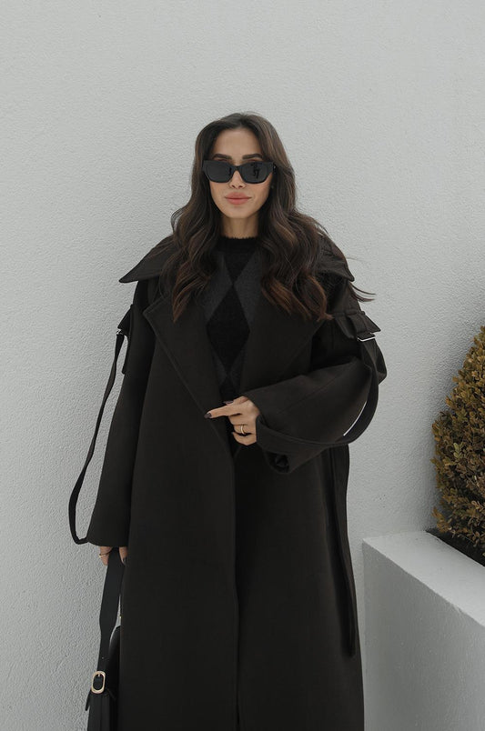 ACI KAHVE HILDA KOLLARI CEP DETAYLI KAŞE KABAN