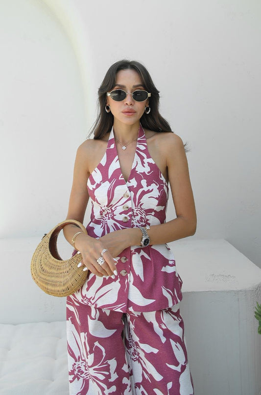 3 AL 2 ÖDEACI KAHVE BIYELI PALAZZO PANTOLON