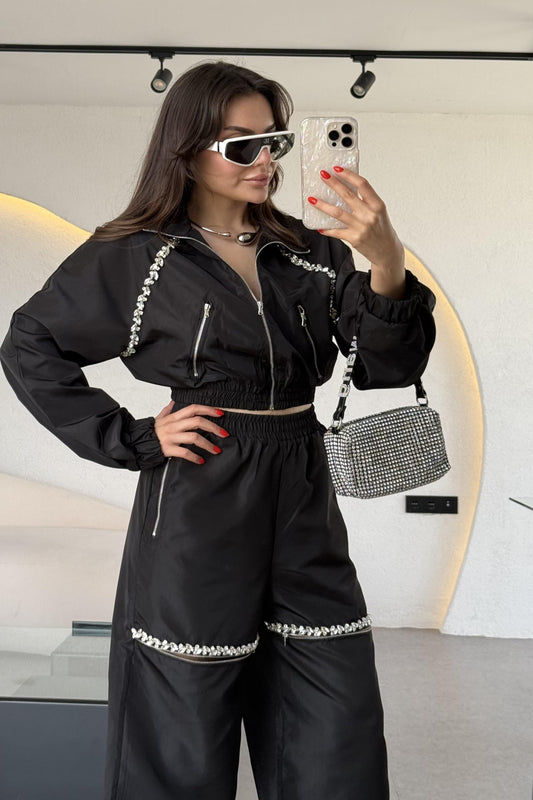 Antonie Siyah Taş Detaylı Tasarım Paraşüt Takım