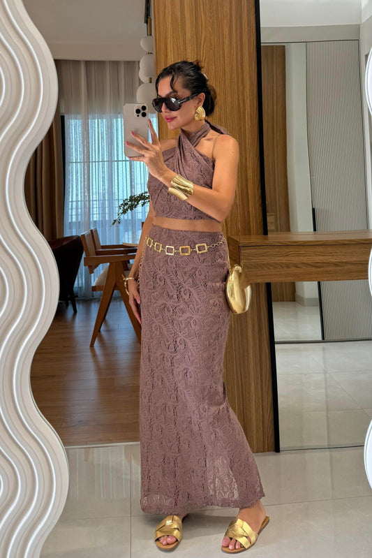 Antonio Kahve Dantel Boyundan Bağlamalı Takım