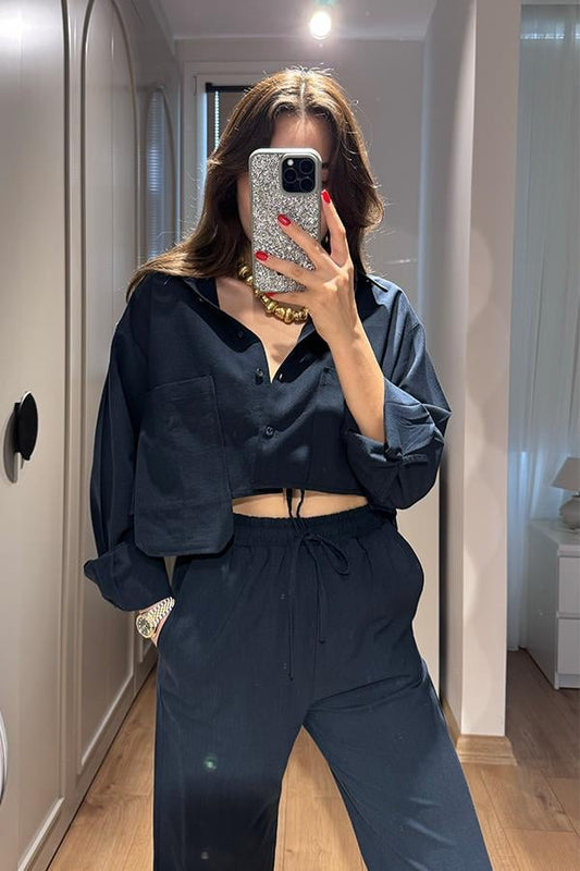 3 AL 2 ÖDEAnnet Cep Detaylı Keten Takım - Lacivert
