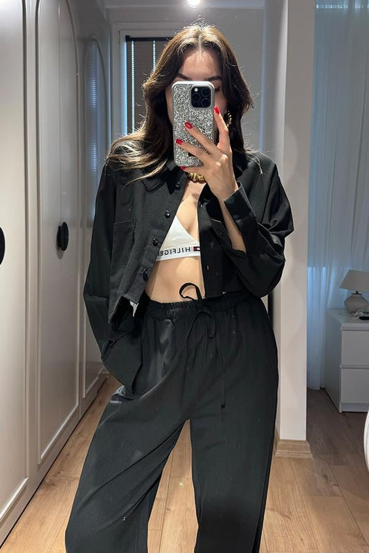 3 AL 2 ÖDEAnnet Cep Detaylı Keten Takım - Siyah
