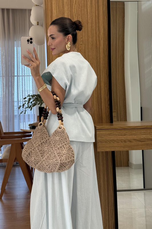 3 AL 2 ÖDEAnselie Mavi Keten Yelek Pantolon Takım