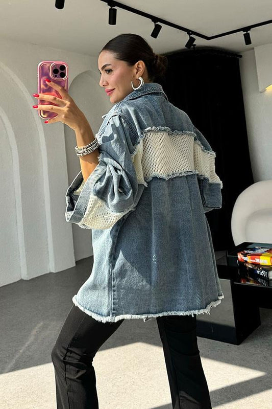 3 AL 2 ÖDEAntone Beyaz Fileli Kot Ceket