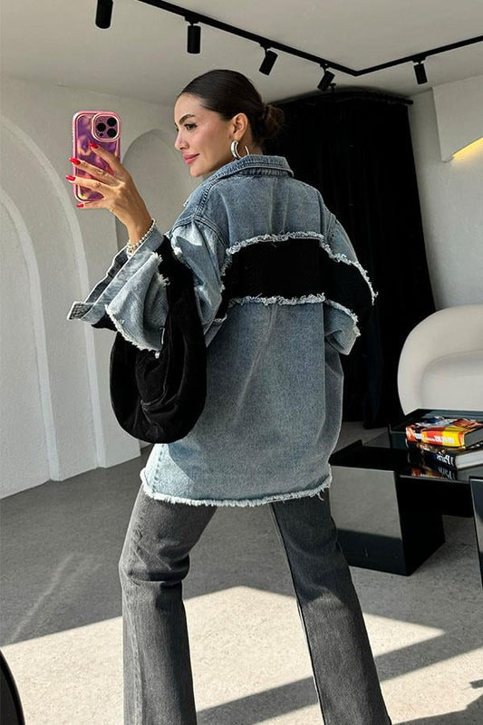 3 AL 2 ÖDEAntone Siyah Fileli Kot Ceket