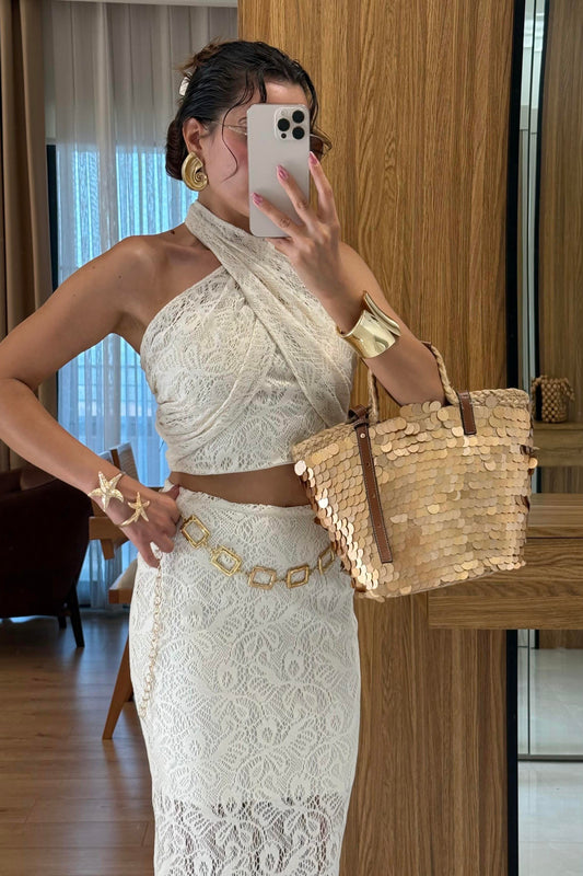 Antonio Naturel Dantel Boyundan Bağlamalı Takım