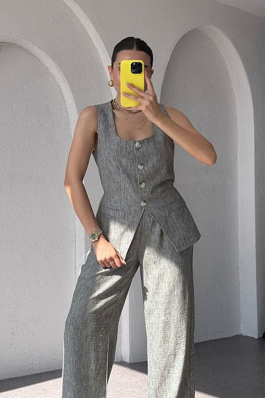 3 AL 2 ÖDEKenyon Keten Yelekli Pantolon Takım-Füme
