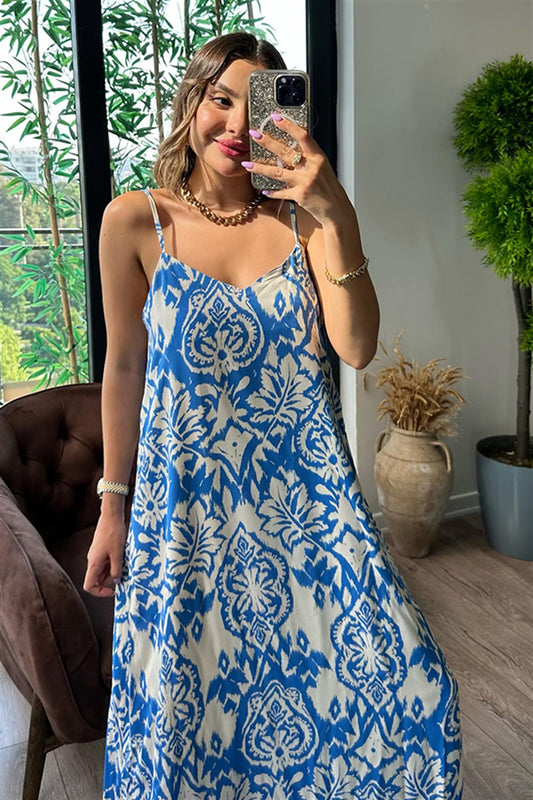 3 AL 2 ÖDEL'Ami etnik desenli elbise - Mavi