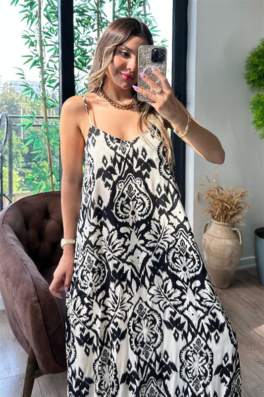 3 AL 2 ÖDEL'Ami etnik desenli elbise - Siyah