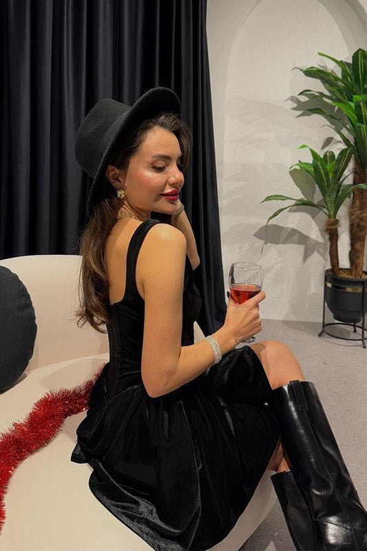 3 AL 2 ÖDELa Lune Askılı Mini Siyah Elbise