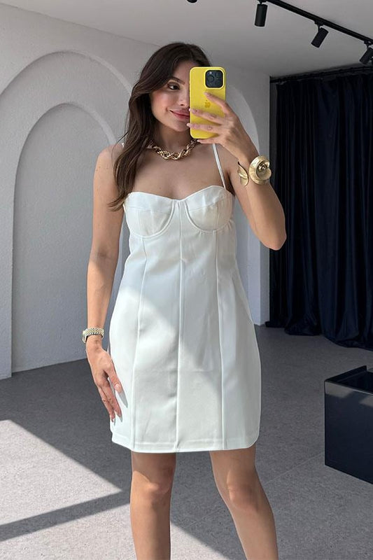 3 AL 2 ÖDELa Lune Askılı Mini Beyaz Elbise