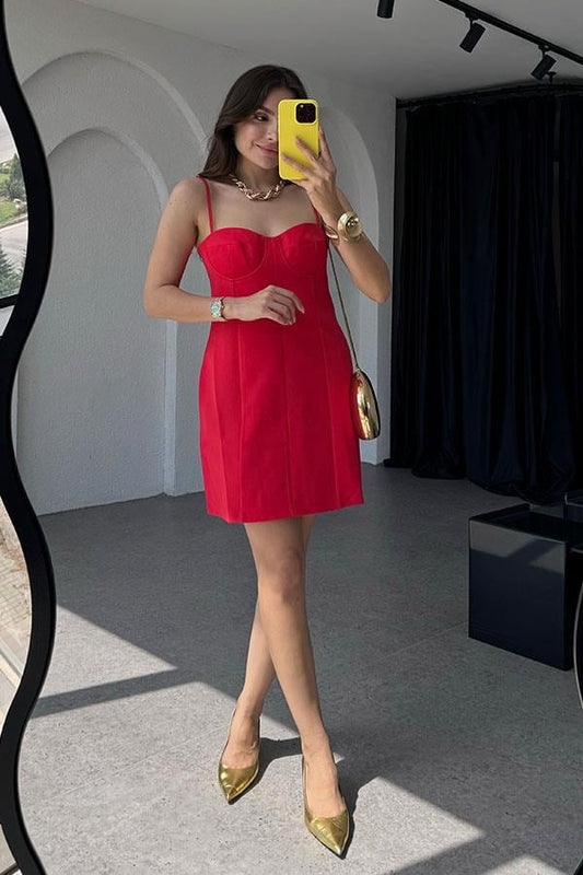 3 AL 2 ÖDELa Lune Askılı Mini Kırmızı Elbise