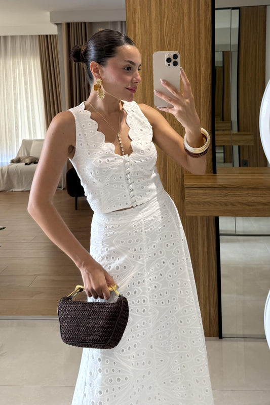 3 AL 2 ÖDELabella Beyaz Brode Etek Yelek Takım