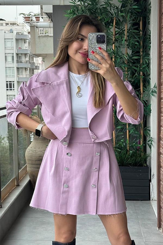 3 AL 2 ÖDELasury Düğme Detaylı Etek Ceket Takım-Lila