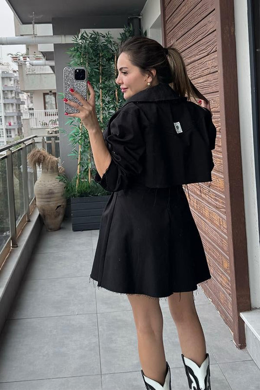 3 AL 2 ÖDELatie Siyah Paraşüt Denim Mix Tasarım Ceket