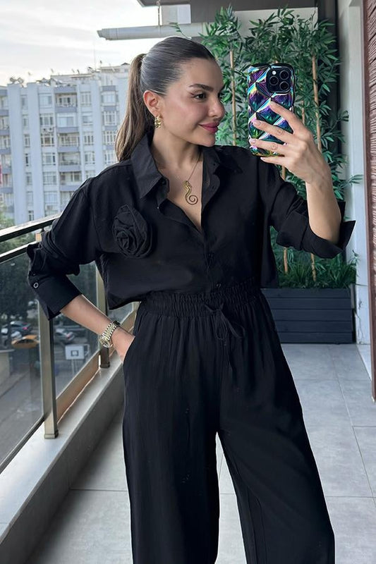 3 AL 2 ÖDELauran Gül Broş Detaylı İkili Takım - Siyah