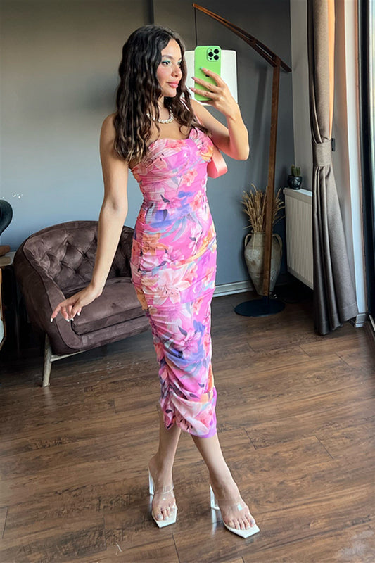 3 AL 2 ÖDELavender straplez çiçekli pembe elbise