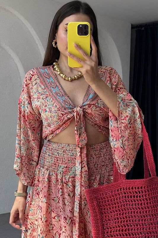 Lestari Etnik Desenli Pantolonlu Takım - Pembe