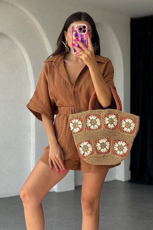 3 AL 2 ÖDELethia Müslin Şortlu İkili Takım-Kahve