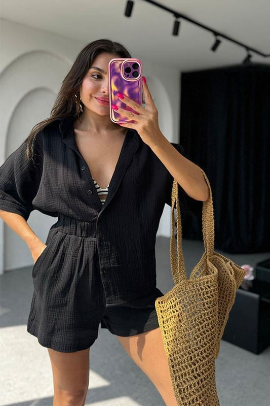 3 AL 2 ÖDELethia Müslin Şortlu İkili Takım-Siyah
