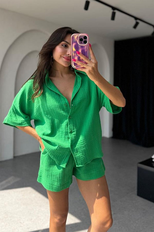 3 AL 2 ÖDELethia Müslin Şortlu İkili Takım-Yeşil