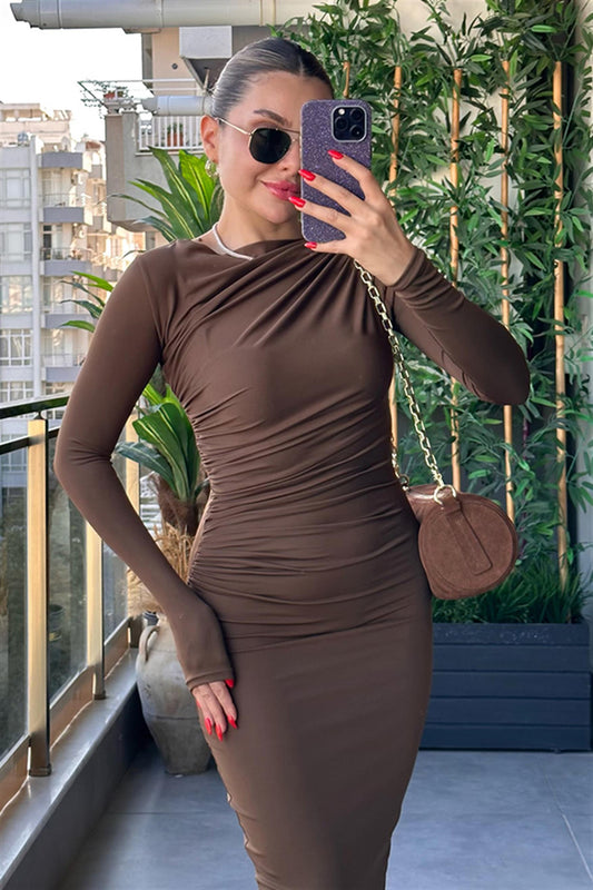 3 AL 2 ÖDELexa Drapeli Sütlü Kahve Elbise