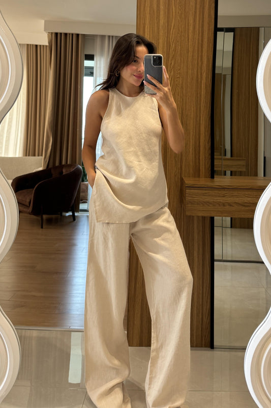3 AL 2 ÖDELewine Bej Keten Asimetrik Takım