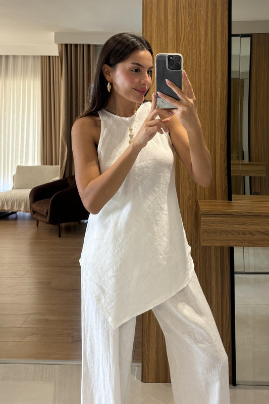 3 AL 2 ÖDELewine Beyaz Keten Asimetrik Takım