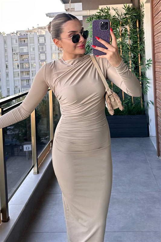 3 AL 2 ÖDELexa Drapeli Bej Elbise
