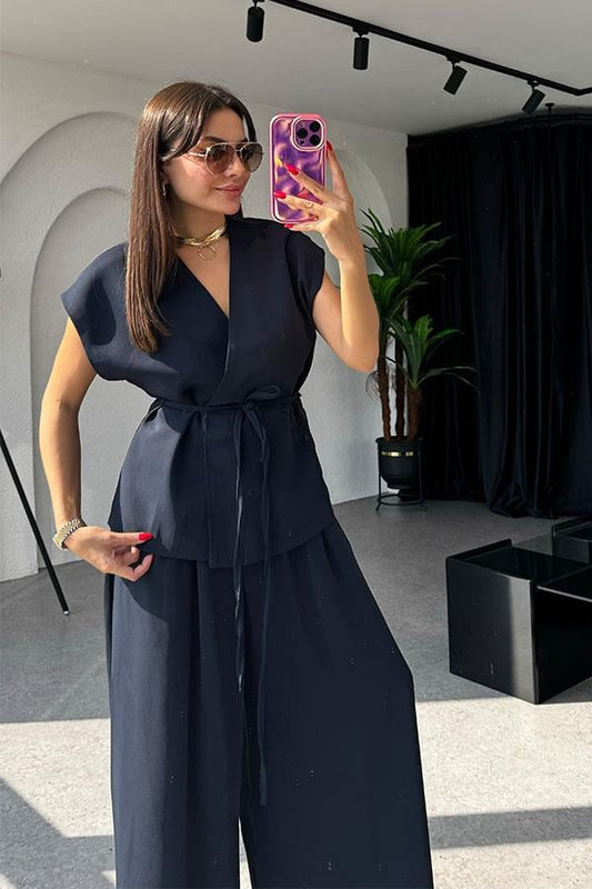 3 AL 2 ÖDELola Bağlamalı Geniş Paça Lacivert Takım