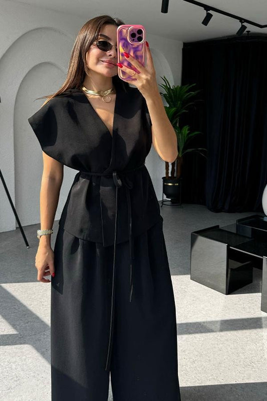 3 AL 2 ÖDELola Bağlamalı Geniş Paça Siyah Takım