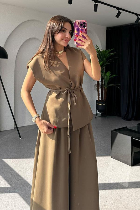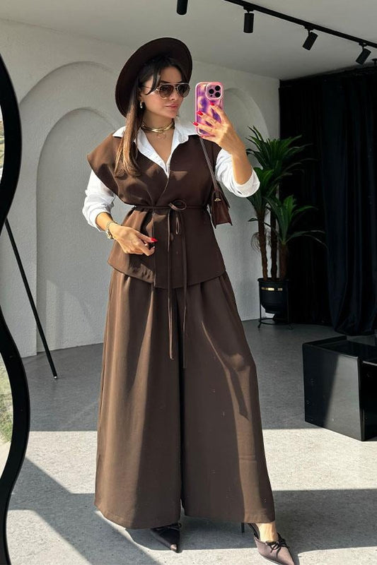 3 AL 2 ÖDELola Bağlamalı Geniş Paça Acı Kahve Takım
