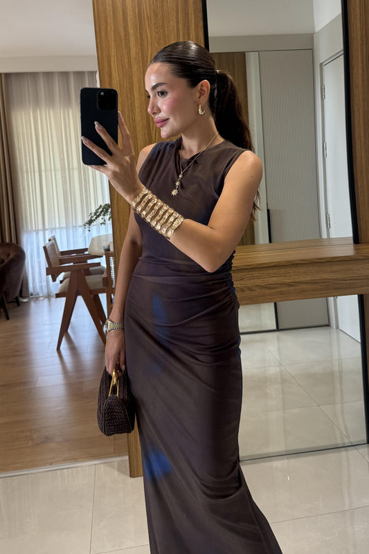 3 AL 2 ÖDELonya Kahverengi Tül Astarlı Elbise