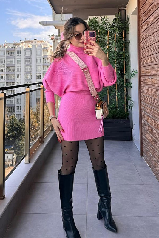 3 AL 2 ÖDELovin Boğazlı Etekli Triko Takım - Pembe