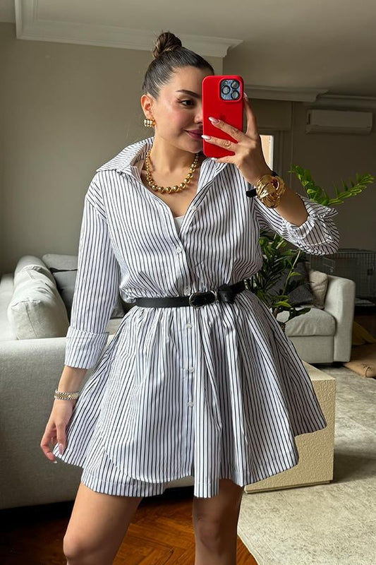 3 AL 2 ÖDELune Çizgili Gömlekli Elbise