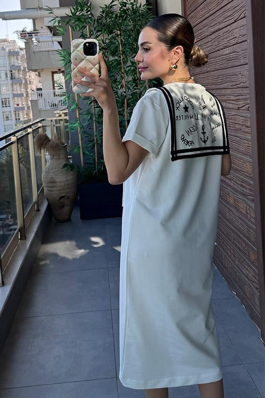3 AL 2 ÖDEMaev Binocu Baskılı Elbise - Beyaz