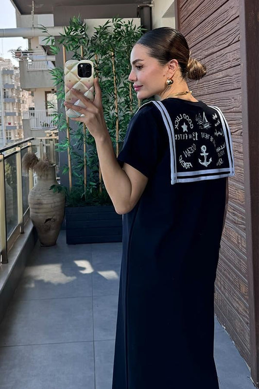 3 AL 2 ÖDEMaev Binocu Baskılı Elbise - Lacivert