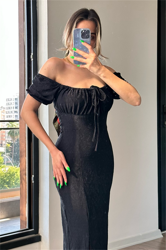 3 AL 2 ÖDEMagıc kayık yaka siyah elbise