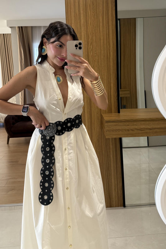 3 AL 2 ÖDEMagnolia Ekru Kemerli Poplin Elbise