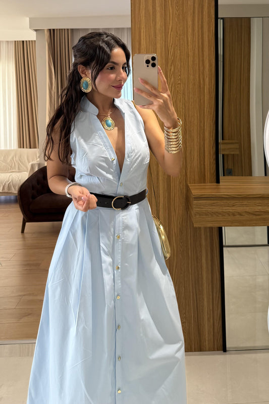 3 AL 2 ÖDEMagnolia Mavi Kemerli Poplin Elbise