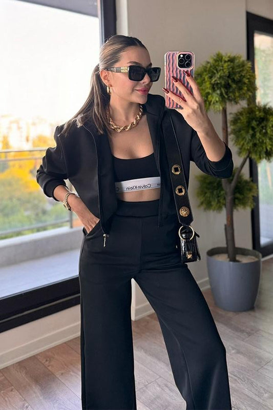 Maldo Kruvaze Ceket Pantolon Tensel Takım - Siyah