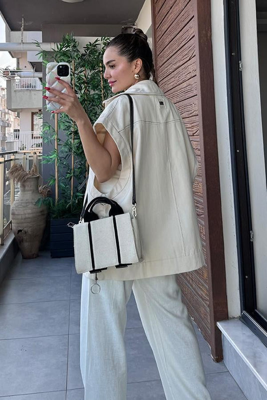 3 AL 2 ÖDEMandarin Gabardin Yelek - Krem