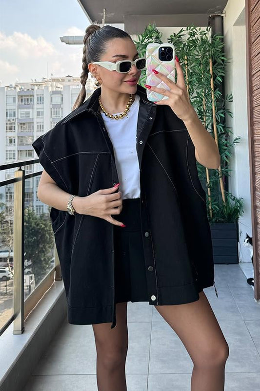 3 AL 2 ÖDEMandarin Gabardin Yelek - Siyah