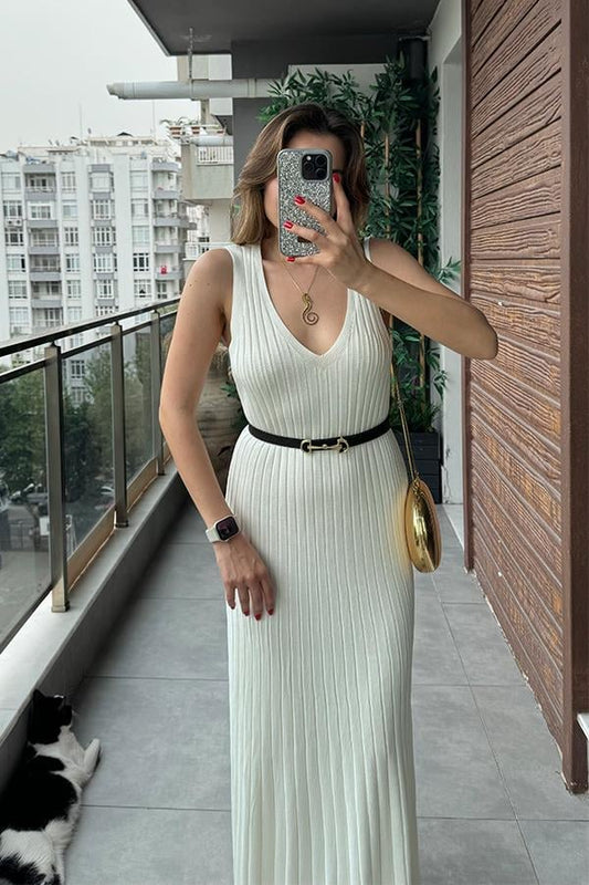 3 AL 2 ÖDEMarsıana Sıfır Kol Fitilli Elbise Ekru