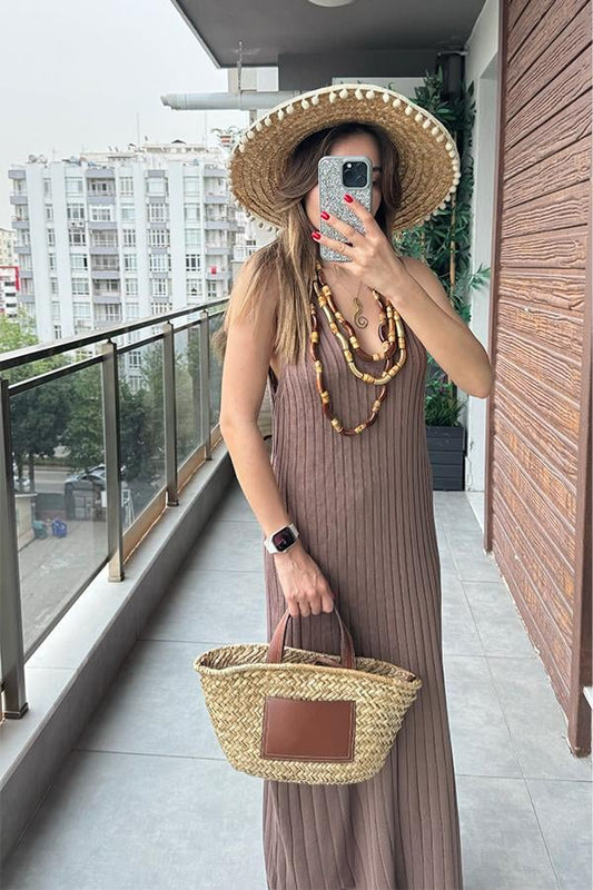 3 AL 2 ÖDEMarsıana Sıfır Kol Fitilli Elbise -Kahve