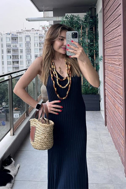 3 AL 2 ÖDEMarsıana Sıfır Kol Fitilli Elbise -Lacivert