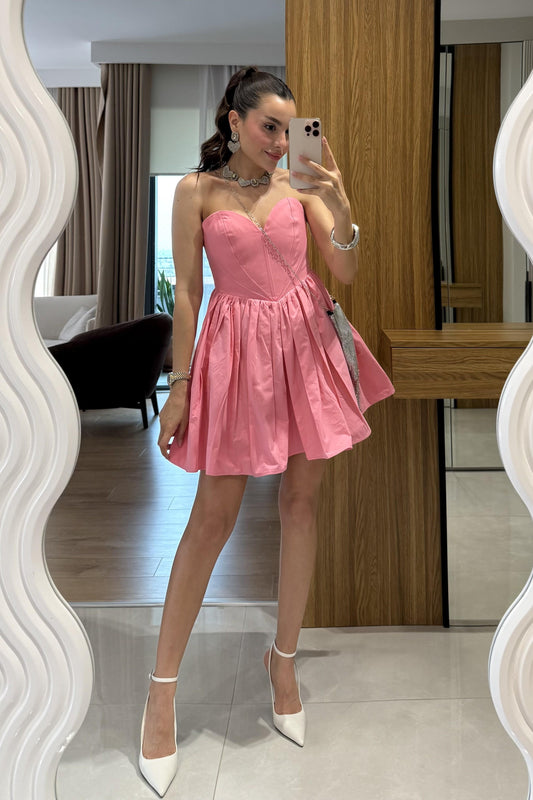 3 AL 2 ÖDEMarsilia Pembe Kalp Yaka Mini Elbise