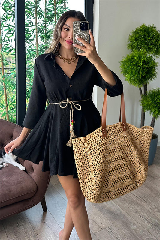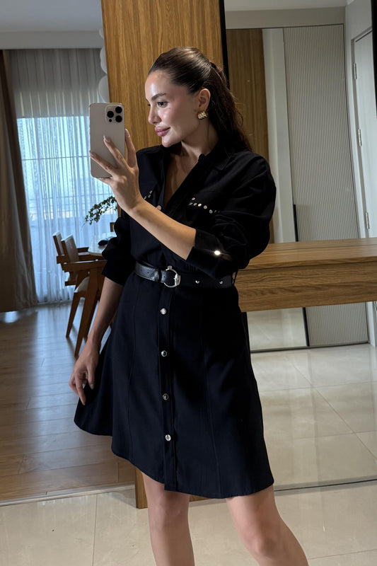 3 AL 2 ÖDEMayor kemerli gömlek elbise - Siyah
