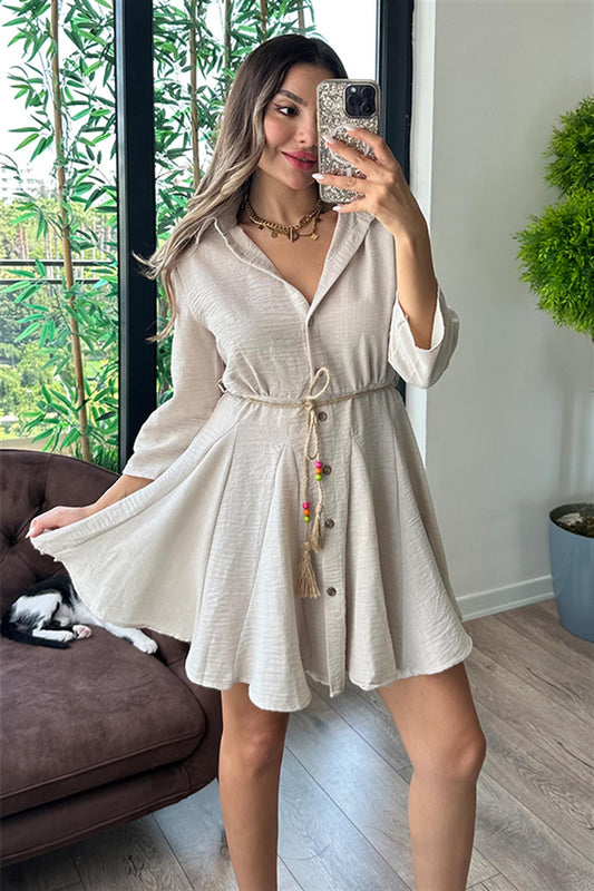 3 AL 2 ÖDEMayor kemerli gömlek elbise - Ekru