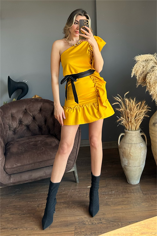 3 AL 2 ÖDEMelita tek omuz hardal sarısı elbise